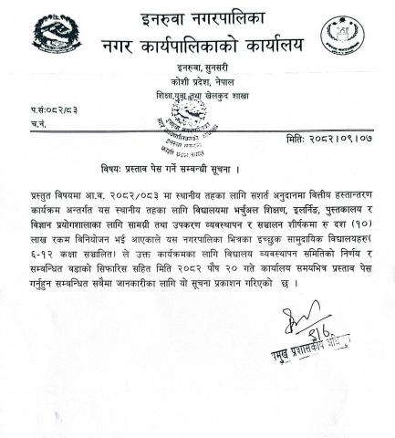 प्रस्ताव पेश गर्ने सम्बन्धी सूचना (सामुदायीक विद्यालयहरु)
