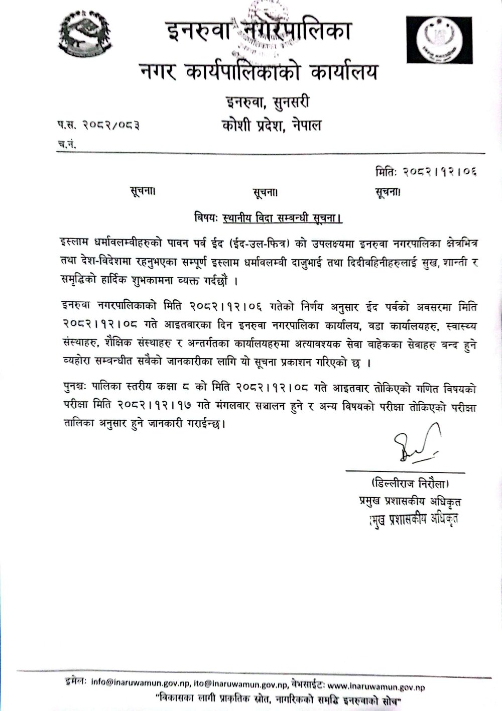 Facebook Page of Inaruwa Municipality