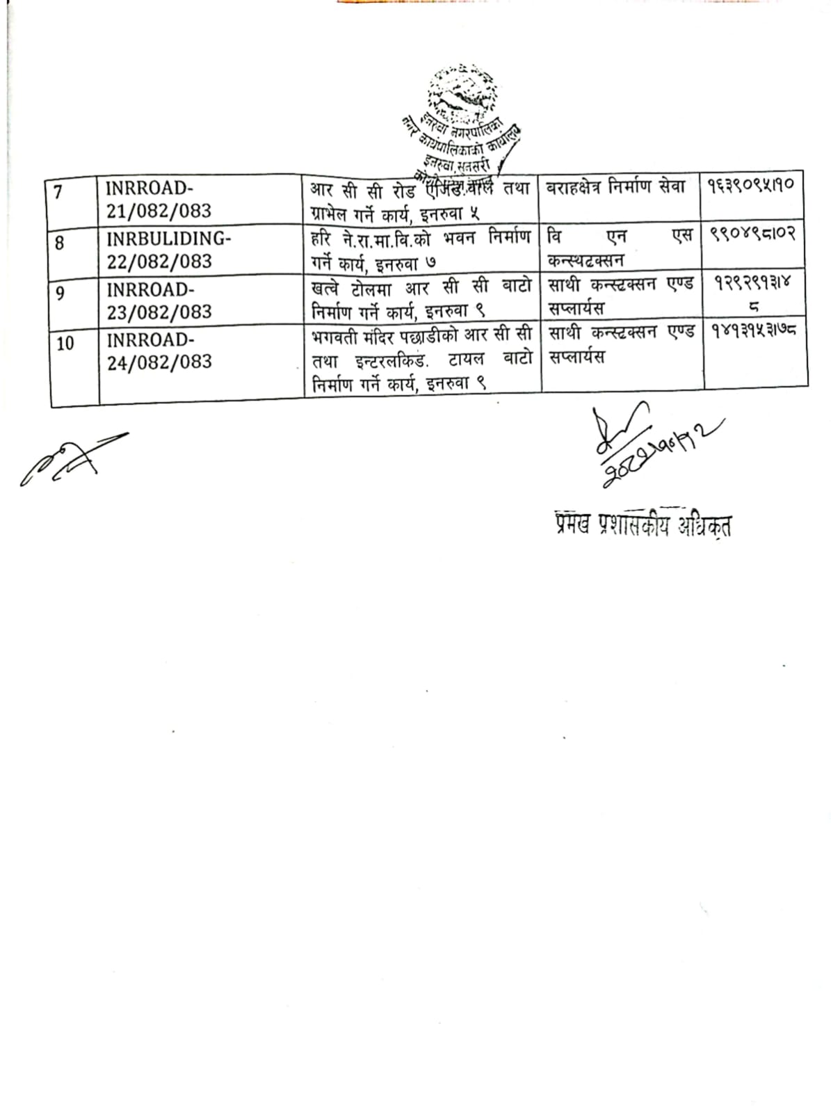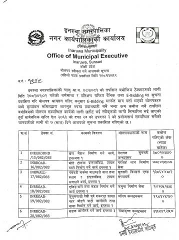 बोलपत्र स्वीकृत गर्ने आषयको सूचना