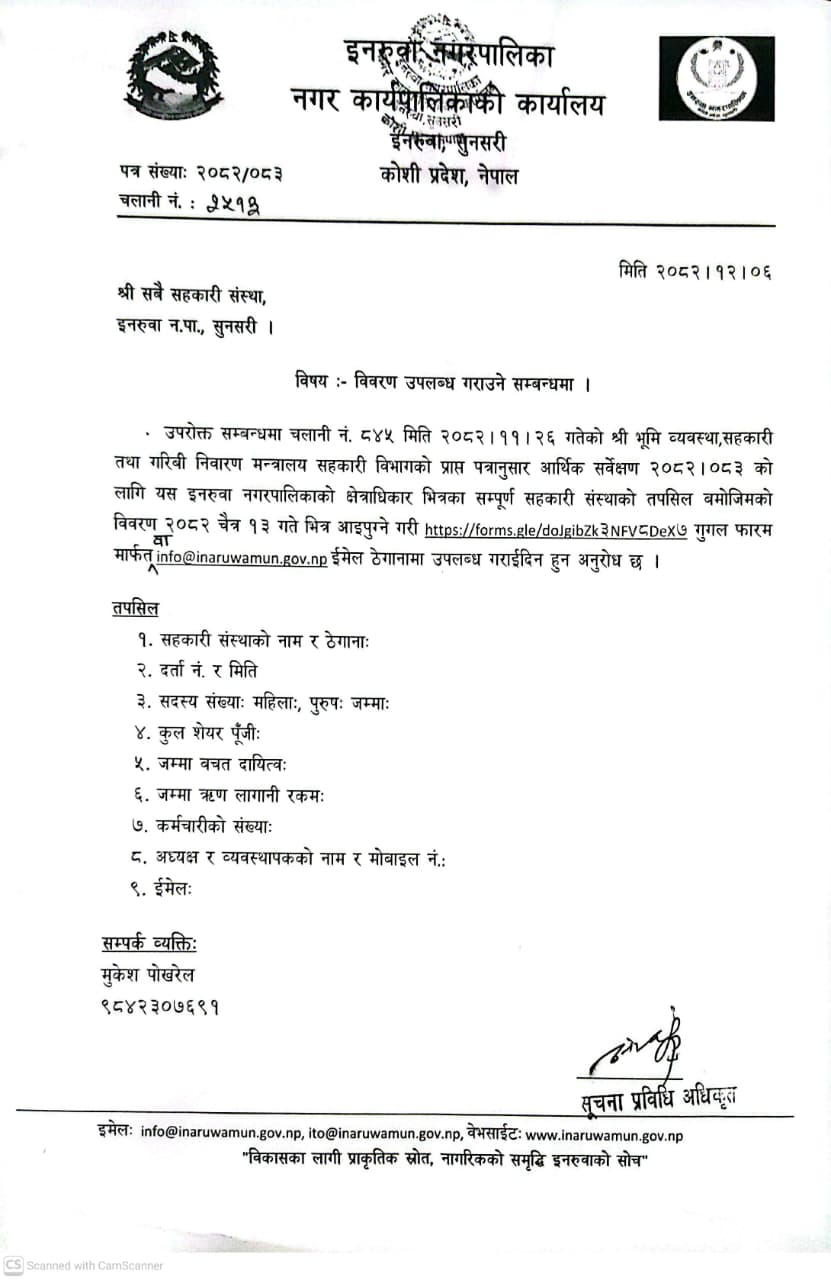 विवरण उपलब्ध गराउने सम्बन्धमा (सहकारीहरु सबै)