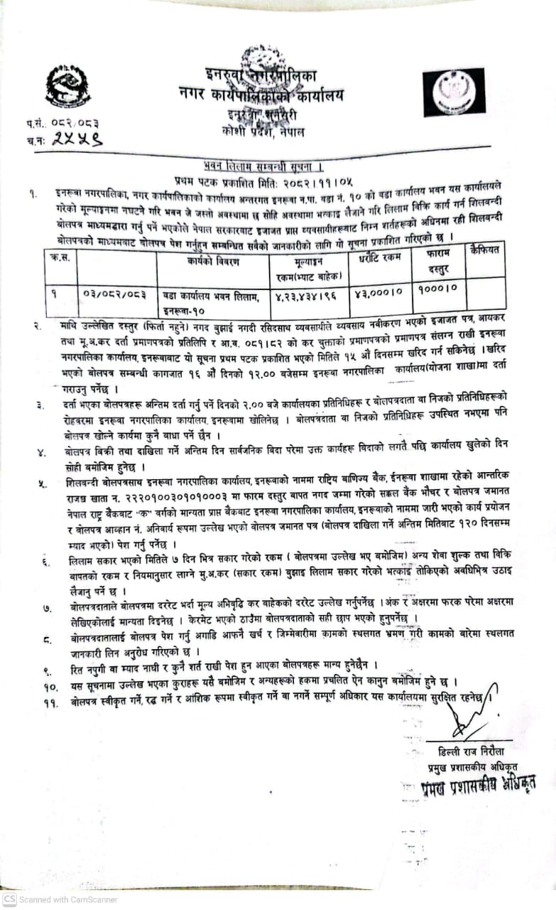 भवन लिलाम सम्बन्धी सूचना (२०८२।११।५)