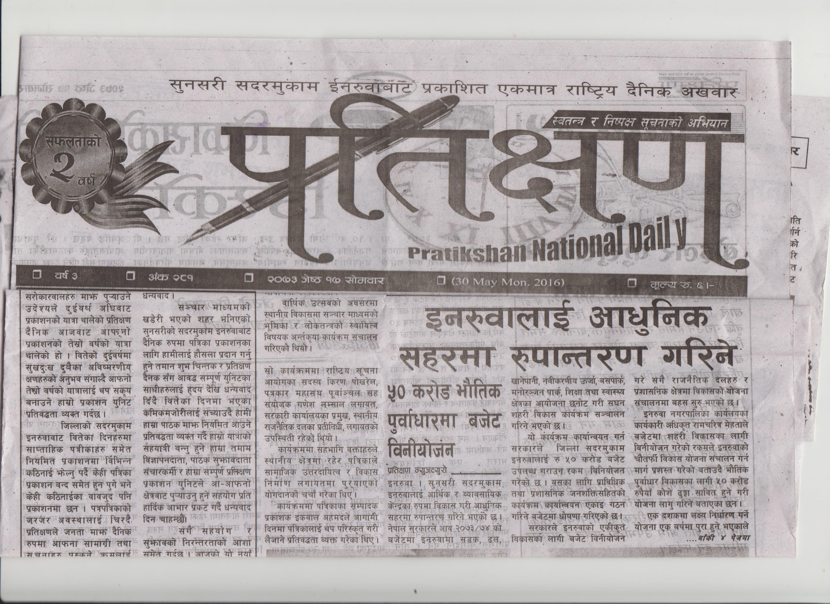 आ.व. २०७३/०७४ का लागि इनरुवालाई ५० करोड बजेट